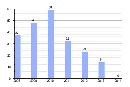 | Gráfica de evolución de la deuda viva del ayuntamiento entre 2008 y 2014 |
