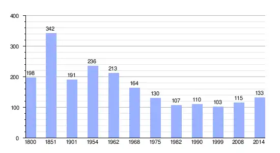 Los datos demográficos contemplados en este gráfico de la comuna de Omméel[4] se han cogido de 1800 a 1999 de la página francesa EHESS/Cassini, y los demás datos de la página del INSEE.[5]