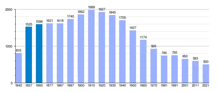 | Gráfica de evolución demográfica de Ontiñena[8] entre 1842 y 2021 |