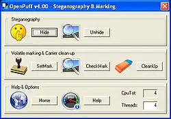 OpenPuff Steganography and Watermarking, a veces abreviado en OpenPuff o Puff, es una herramienta libre de esteganografía para Microsoft Windows creada por Cosimo Oliboni y todavía desarrollada como software independiente. El programa es notable por haber sido uno de los primeros instrumentos de esteganografía (versión 1.01 liberada el diciembre de 2004) que: