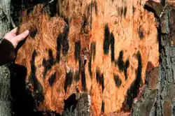 El orden Ophiostomatales, perteneciente a la división Ascomycota,[1] agrupa especies que se encuentran en simbiosis con insectos y pueden llegar a ser patógenas. Por norma general, las especies del orden Ophiostomatales metabolizan monosacáridos (sustancias de reserva) que se encuentran en las células ubicadas en la madera de los pinos.[2] Por esta razón, es frecuente que embadurnen la corteza de estos con color azul.[3]