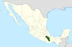Endémica de algunas regiones de México en los estados de Oaxaca, Puebla y Tlaxcala.[2][3][4]