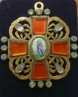 | Otorgada por | Se entregaba a las personas que recibiesen la Orden de San Andrés y los nobles al ser bautizados. | |