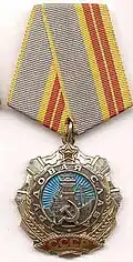 ![]() Anverso de la Orden de la Gloria Laboral de 1.er grado | ||