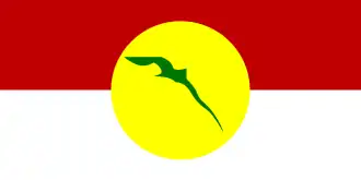 ![]() ![]() Logo (arriba) y bandera (abajo) de la UMNO. | ||