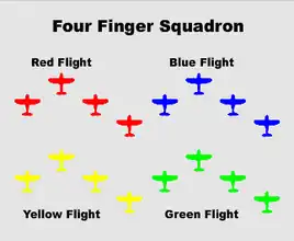 Los Gruppen o Staffeln especializados e independientes a veces se encontraban por debajo del nivel de un Fliegerkorps.[11] Un Schwarm (en plural, Schwärme; literalmente "enjambre"), constaba de cuatro a seis aviones dentro de un Staffel. Un Schwarm de bombarderos (con toda su potencia, seis aviones) se dividía en una Kette ("cadena") de tres aviones. Como tal, un Schwarm de bombarderos equivalía a una escuadrilla en las fuerzas aéreas aliadas occidentales. Kette también era el término utilizado para una formación en "V".[13][14] Un Schwarm de cazas (cuatro aviones) estaba dividido en dos Rotten (en singular, Rotte, "paquete") de dos aviones. Como tal, un Schwarm de cazas equivalía a una sección de las fuerzas aéreas aliadas occidentales. El término Rotte también se utilizó para una formación de dos aviones: la unidad táctica más pequeña, formada por un líder y un escolta. A cada Geschwader se le adjuntó un Stabschwarm ("Schwarm de personal").[6]