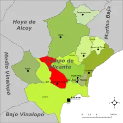 Situada al oeste del término, linda al norte y al oeste, con el término de Alicante, al este con la Carretera de Castalla y al sur con la carretera de La Alcoraya. Es una partida eminentemente industrial, careciendo de urbanizaciones o núcleos urbanos destacables. El PGOU contempla a esta zona como de preferencia industrial. Hay grandes reservas de terreno para la instalación de nuevas industrias. En esta partida está el único centro de almacenamiento para reciclaje del municipio. El polígono industrial más importante del municipio se encuentra en esta partida, envolviendo a la Carretera de Agost.
