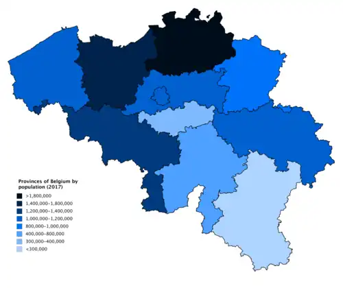 Provincias de Bélgica (incluyendo la Región Bruselas- Capital) por población el 1 de enero de 2017