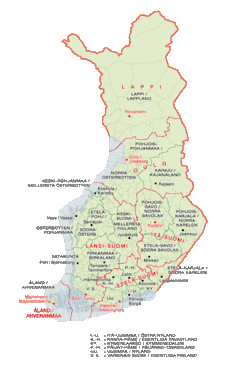 También hay Provincias históricas de Finlandia (Finés: maakunnat o provinssit – singular maakunta o provinssi), Sueco: landskap).