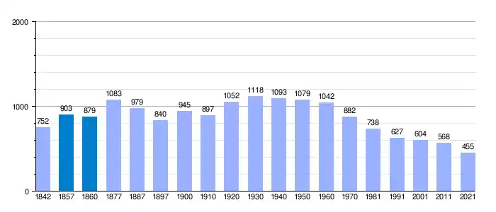 | Gráfica de evolución demográfica de Orihuela del Tremedal[5] entre 1842 y 2021 |