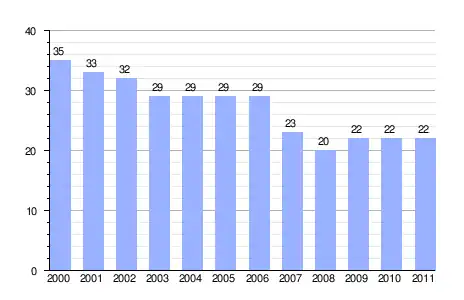 | Gráfica de evolución demográfica de Ortigosa de Tormes entre 2000 y 2011 |
