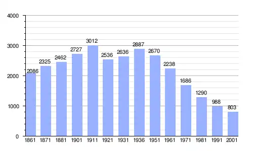 | Gráfica de evolución demográfica de Ortona dei Marsi entre 1861 y 2001 |
