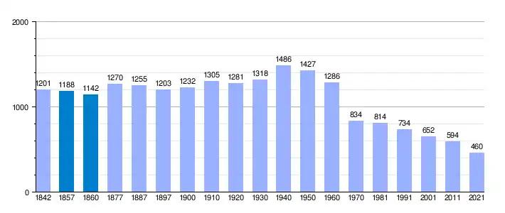 | Gráfica de evolución demográfica de Osa de la Vega[4] entre 1842 y 2021 |