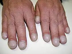 - ↑ Spicknall, K; Zirwas, M; English, J (agosto de 1993). «Clubbing: An update on diagnosis, differential diagnosis, pathophysiology, and clinical relevance». J Am Acad Dermatol (Pittsburgh, Pennsylvania) 52 (6): 1020-8. doi:10.1016/j.jaad.2005.01.006. Consultado el 5 de junio de 2013.