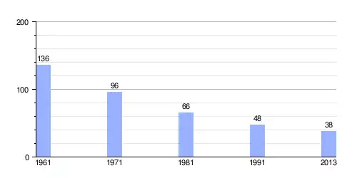 | Gráfica de evolución demográfica de Ostojići entre 1961 y 2013 |