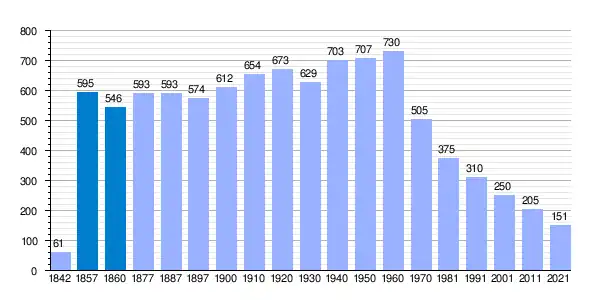 Población de derecho según los censos de población del INE Población de hecho según los censos de población del INEEntre el censo de 1857 y el anterior, crece el término del municipio porque incorpora a 495151 (Val de Santa María)[11] |