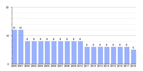 | Gráfica de evolución demográfica de Outarelo entre 2000 y 2018 |