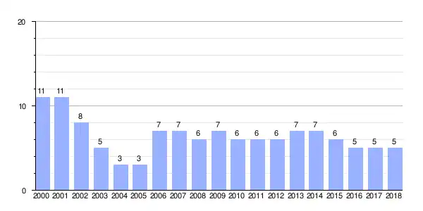 | Gráfica de evolución demográfica de Outeiro de Abaixo entre 2000 y 2018 |