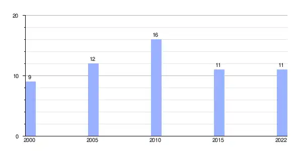 | Gráfica de evolución demográfica de Outorelo entre 2000 y 2022 |