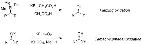 - ↑ "Oxidative cleavage of the silicon-carbon bond: Development, mechanism, scope, and limitations" by Tamao, K. in "Advances in Silicon Chemistry" (1996), 3, 1-62 CODEN: ADSDEO; ISSN 1059-4256.