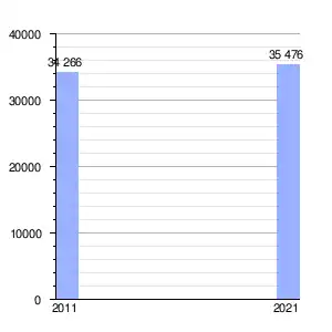 | Gráfica de evolución demográfica de Póvoa de Varzim, Beiriz e Argivai entre 2011 y 2021 |