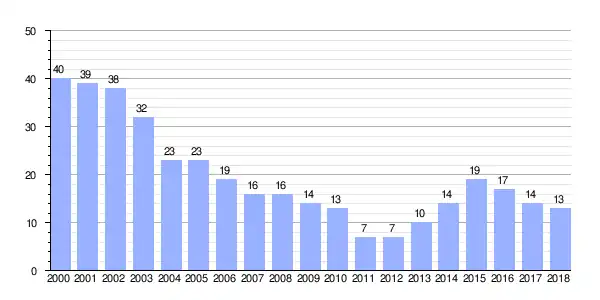 | Gráfica de evolución demográfica de Paínza entre 2000 y 2018 |