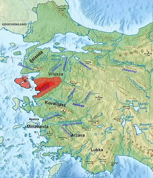 El país del río Seha estaba situado en las costas egeas de la península anatólica, alrededor del río homónimo que se ha identificado con el Meandro (Menderes),[3] el Hermo (Gediz)[4] y el Caico (Bakir).[1]