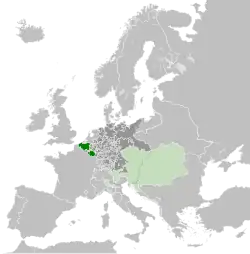 ![]() Países Bajos Austríacos con respecto al territorio del Imperio austríaco, 1789. | ||||||||||||||||||||||||||||||||||