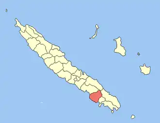 Localización de la comuna (en rojo) dentro de Nueva Caledonia. | ||