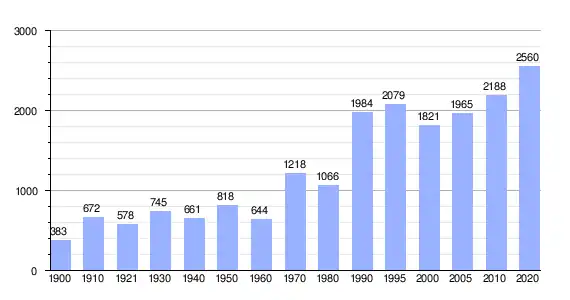 En 2020 registró una población de 2560 personas, lo que corresponde al 6.74 % de la población municipal.[1][7] De los cuales 1239 son hombres y 1321 son mujeres.[1][7]