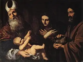 - San Nicolás de Bari y el niño Basilio, sacristía menor de la Certosa di San Martino, Nápoles (1636)