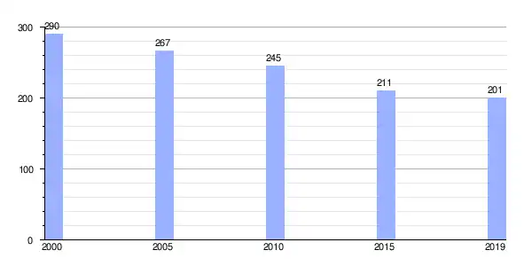| Gráfica de evolución demográfica de Pacios entre 2000 y 2019 |