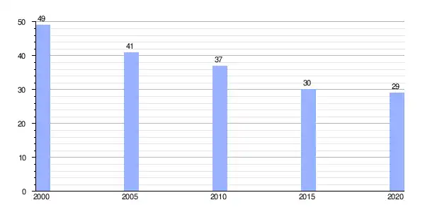 Gráfica de evolución demográfica de Pacios (aldea) entre 2000 y 2020