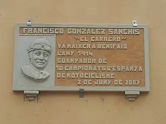 ![]() Placa en homenaje situada en la calle dedicada a él en su pueblo natal | ||