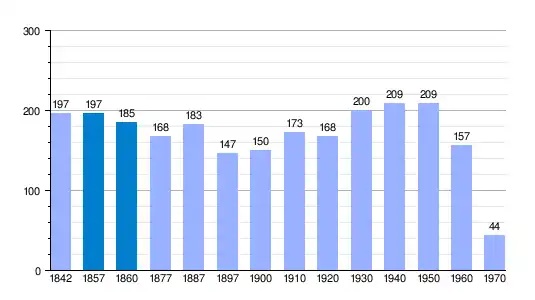| Gráfica de evolución demográfica de Padilla de Hita[5] entre 1842 y 1970 |