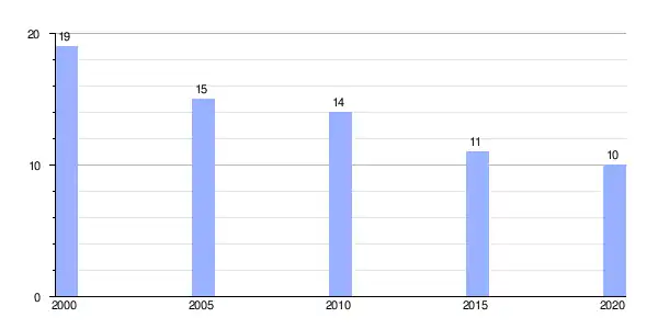 | Gráfica de evolución demográfica de Padornelo (parroquia) entre 2000 y 2020 |