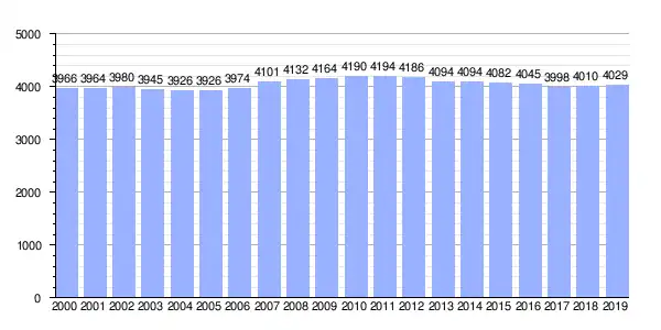 | Gráfica de evolución demográfica de Padrón (parroquia) entre 2000 y 2019 |