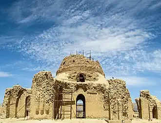 El monumento de Sarvestan, una vez confundido con un palacio sasánida y ahora considerado un probable templo de fuego, fue construido entre finales del siglo VII y finales del siglo IX, o durante el período de transición entre el final de la dinastía y la conquista árabe. Forma un chahartaq, una unidad arquitectónica que consta de cuatro arcos.