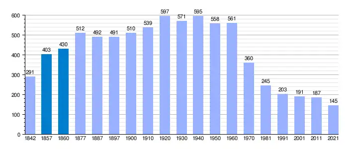 | Gráfica de evolución demográfica de Pajares de Adaja[7] entre 1842 y 2021 |