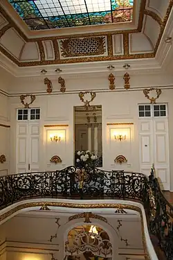 - Gran Salón, salón de doble altura en el que destacan los grandes vitrales y espejos en su muro, con un pasillo del segundo piso a la vista.