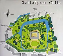 Fuera del cinturón defensivo, pero no lejos del palacio, Jorge Guillermo tenía el Jardín Francés ("Französischer Garten"), un parque barroco diseñado con líneas francesas, dispuesto a finales del siglo XVII. Este fue convertido luego en un jardín inglés, pero el antiguo estilo barroco todavía puede descubrirse en ciertas zonas del parque.