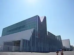 De estructura horizontal y 167 m de longitud, el Palacio de Congresos se envuelve de una cubierta sinuosa con lucernarios que permiten el paso de los rayos solares para iluminar vestíbulos y salas comunes. Asimismo, la estancias reciben luz natural del exterior por las paredes traslúcidas de las fachadas, que alternan frentes acristalados y celosías metálicas.