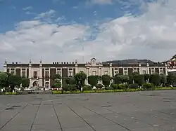 Hacia el año 1870, el gobernador Mariano Riva Palacio ordenó la construcción del Antiguo Palacio de Gobierno en el predio donde se encontraban las Casas Consistoriales. El palacio fue terminado en 1874 mientras gobernaba la entidad el licenciado Alberto García Pliego.[1]