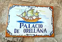 - ↑ a b c Cordero Alvarado, Pedro: Trujillo (Guía Monumental y Heráldica). María Maestre Editorial. Cáceres, 1996., Pedro (1996). «Palacio de los Orellana Pizarro (Ronda de las Almenas)». Trujillo (Guía Monumental y Heráldica). Cáceres: María Maestre Editorial. pp. 73-74. ISBN 8492198605.