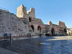 El Palacio de los Porfirogénetas, visto al fondo, con las paredes teodosianas al frente.