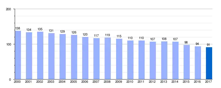 | Gráfica de evolución demográfica de Palacios de Benaver entre 2000 y 2017 |