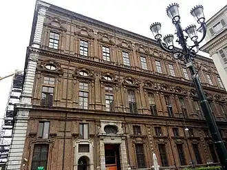 Su construcción se inició el 24 de junio de 1679 bajo la dirección de Miguel Ángel Garove, quien finalizó la obra en 1687]], después de haber realizado un buen número de modificaciones al proyecto original. En el proyecto original del jesuita Carlo Maurizio Vota, el edificio debía ocupar tres manzanas hasta Piazza Castello gracias a un sistema de pasajes subterráneos que, sin embargo, nunca se construyeron. Durante mucho tiempo la idea del proyecto se atribuyó a Guarino Guarini, pero recientemente los historiadores del arte, ante la falta de dibujos del arquitecto de Chieti, las complejas vicisitudes de los primeros años de construcción y el compromiso que Guarini tuvo en esos mismos años, han llegado a la conclusión de que el arquitecto era el arquitecto de la época. Los años en la obra del cercano edificio de Carignano avalan su papel completamente marginal.[1]Destinado a albergar el Collegio dei Nobili (un colegio para los jóvenes vástagos de la nobleza piamontesa), en 1787, por rescripto soberano de Vittorio Amedeo III de Saboya, rey de Cerdeña, se convirtió en la sede de la Real Academia de Ciencias. La estructura del edificio tenía inicialmente forma de herradura, con una parte delantera central flanqueada por dos alas. El edificio debía tener tres plantas sobre el suelo y un sótano. Sin embargo, por falta de fondos, la construcción del ala que da a la Piazza Carignano se suspendió en el primer piso y permaneció así durante todo el siglo XVIII.[2][3]