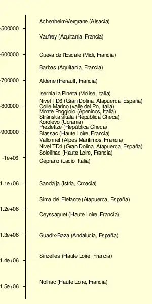 Por su parte, la locución Paleolítico Inferior Arcaico es muy similar a la usada en el Congreso sobre Les Premiers Européens, celebrada en París del 3 al 9 de abril de 1989: Très Ancien Paléolithique.