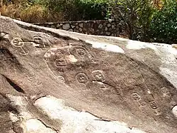 - El Elemento 18 se localiza en la parte más baja de la zona arqueológica, representa figuras de caras o círculos esquematizados relacionados con el ciclo del año agrícola.