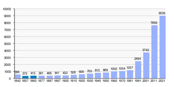 | Gráfica de evolución demográfica de Palomares del Río[2] entre 1842 y 2021 |